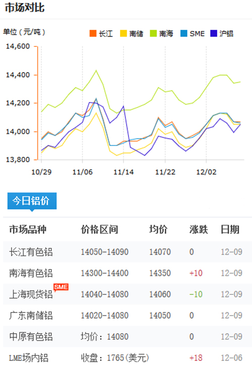 鋁錠價(jià)格今日鋁價(jià)2019-12-09