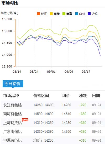 鋁錠價格今日鋁價2020-09-24